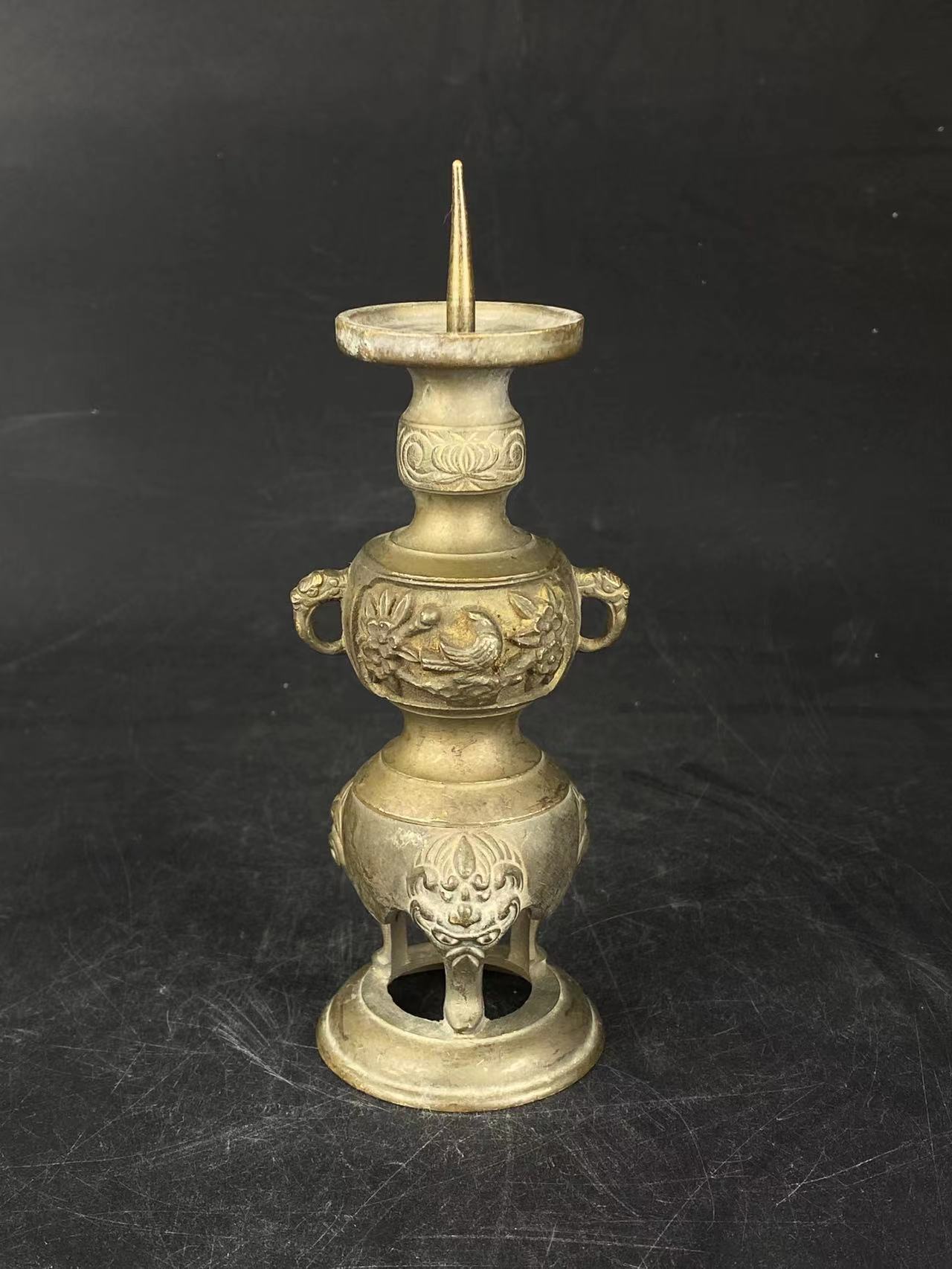 浮雕花鸟纹铜烛台