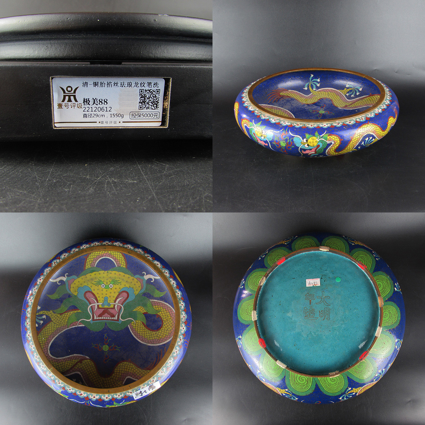 铜胎掐丝珐琅龙纹笔洗